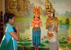 There are many classical dance forms in Cambodia, of which a highly stylized art form was once confined mainly to the courts of the royal palace and performed mainly by females. Known formally in Khmer.